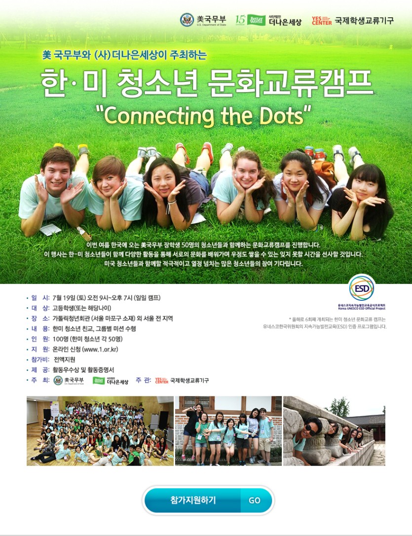 이번 여름 한국에 오는 美국무부 장학생 50명의청소년들과 함께하는 문화교류캠프를 진행합니다.