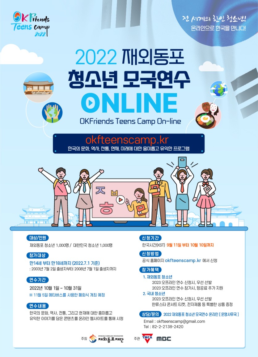 ‘청소년 모국연수 온라인’ 공식 홈페이지 www.okfteenscamp.kr 에서