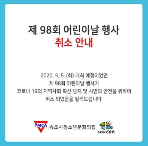 '제 98회 어린이날 기념 큰잔치' 행사 취소 안내