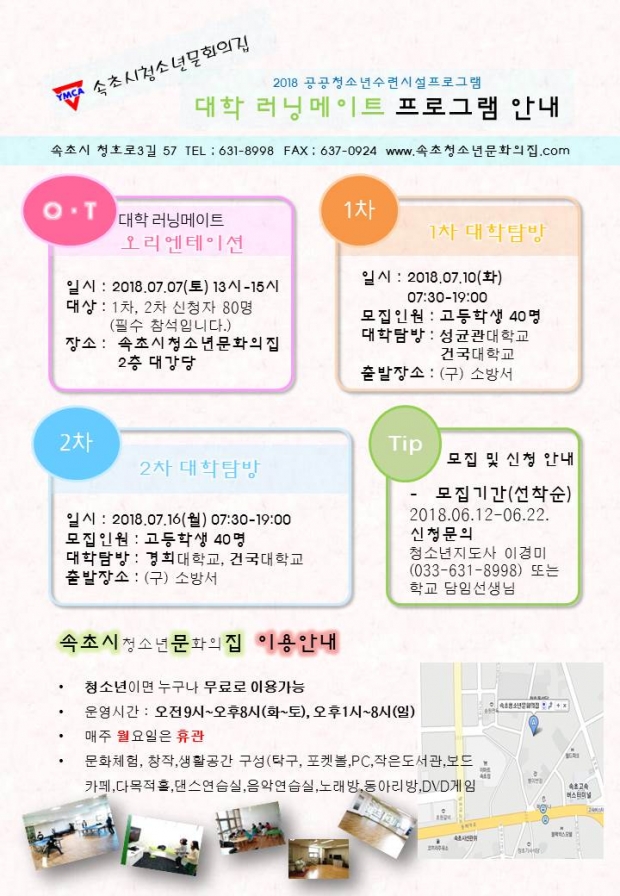 - 이전글공공청소년수련시설 프로그램 '대학러닝메이트' 모집 26.01.21